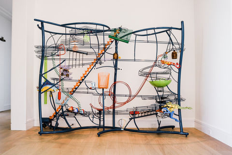 Our Ball Machine lineage began with painter, sculptor, and one of the first American origami masters, George Rhoads (1926-2021). In 2007, Rhoads selected Creative Machines to continue the tradition of his artwork. Today, we design and fabricate Ball Machine Sculptures on behalf of George Rhoads and carry on his legacy by pushing the designs in exciting new directions. We continue to use the techniques developed by George Rhoads in our Ball Machine Sculptures, incorporating his fabrication methods, design elements, and strategies for making reliable, long-lasting sculptures.