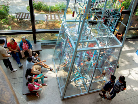 Ball Machine Sculptures delight people of all ages and backgrounds with their swooping tracks, ingenious devices, sound-producing elements, and charming miniatures. Every ball machine we make shares our proven engineering and expresses different themes and sentiments. We have created Ball Machine Sculptures that illustrate many natural and mechanical processes, depict animals and regional attractions, and evoke the motion and emotion of various sports. Today, there are nearly 250 Ball Machine Sculptures located in airports, hospitals, science museums, shopping centers, private collections, and public spaces around the world.