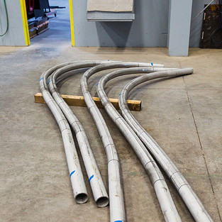 Fabrication is ongoing for the new suspended artwork commissioned for Camelback Commons, a set of office buildings located in Phoenix, Arizona. The monumental hanging sculpture will hang in the center of two atriums and will gently rotate in the space. The leaves will be painted in shades of yellow, green, and blue. Here are some photos of its progress.