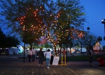 Last week, we sent Eric Gustafson and Logan Crouse to Mesa, Arizona for the Spark! Festival for Creativity to install one of our temporary projects, Living Tree. We covered some of the local trees in beautiful color changing LED lights and incorporated an interactive panel that allows visitors to control the lighting and emit playful sounds.