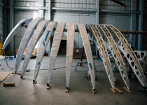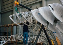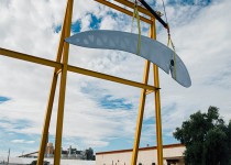 While our install team has been working hard in Houston, our fabrication team has been continuing progress on the individual wings. Each wing is constructed out of stainless steel, aluminum and Stamisol fabric skins. These wings will move in a smooth and natural movement across the top of the sculpture. Once the wings have been finished, we will be sending them along with the spine to Houston for the final installation.