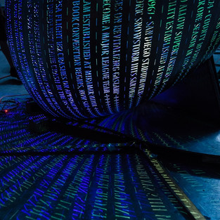 At night, our powerful point-source lights will project through the perforated stainless steel shell to activate the space around the sculpture with the projected silhouettes of the words that make up the surface. The illuminated landscape around the shell becomes a magical space for exploration at night and when viewed from above.